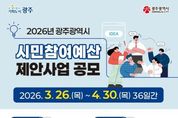 리치데일리 김상현 기자 | 광주광역시는 2027년도 예산 과정에 시민참여를 보장하기 위한 ‘시민참여예산 제안사업’을 4월30일까지 접수한다. 시민참여예산은 재정 운영의 투명성을 높이고, 재정민주주의를 강화해 시민 삶의 질을 향상시키기 위한 제도다. 광주시에 거주하는 시민이나 단체는 누구나 사업을 제안할 수 있다. 제안 대상 사업은 단년도에 완료되는 광주시 소관 사무로 ▲시정참여형 ▲청년참여형 등 두 가지를 접수한다. 시정참여형은 시민 생활과 밀접하고 시민 수혜도가 높은 5억원 이하 사업이다. 청년참여형은 일자리, 창업지원, 맞춤형 교육, 창작활동 등 청년 정책 사업으로 예산 제한 없이 제안할 수 있다. 다만, 민원성 사업, 특정단체 중복성 사업, 일회성 공연 축제, 공익에 저해되는 사업 등은 심사에서 제외한다. 참여는 광주시 누리집 시민참여예산시스템 주민e참여시스템 혹은 시민광장 광주온으로 온라인 신청할 수 있다. 전자우편과 우편(광주 서구 내방로111, 예산담당관실) 신청도 가능하다. 광주시는 접수된 제안사업에 대해 소관부서 검토, 시민투표, 시