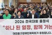 리치데일리 김상현 기자 | 대전 동구는 지난 23일 동구청 대회의실에서 ‘2026년 동구장애인체육회 전국대회 출정식’을 개최했다고 밝혔다. 이날 출정식에는 박희조 동구청장을 비롯해 오관영 동구의회 의장, 종목별 협회 임원 및 선수 등 60여 명이 참석했으며, 출정복 전달과 선수대표 결의문 낭독을 통해 선수단의 각오를 다졌다. 특히 참가 선수들은 그동안 갈고닦은 기량을 바탕으로 정정당당한 경기와 최선을 다하는 자세로 동구의 명예를 드높일 것을 다짐했다. 구는 이번 출정식을 통해 파크골프, 게이트볼, 론볼 등 3개 종목 선수들의 사기 진작과 화합을 도모하고, 장애인 체육 활성화를 위한 지원을 지속적으로 확대해 나갈 방침이다. 선수단은 오는 9월부터 11월까지 ▲론볼(9월 29일 인천광역시장배 전국대회) ▲게이트볼(10월 23일 금산인삼배) ▲파크골프(10월 31일 중앙회장배 전국대회) 등 각종 전국대회에 순차적으로 출전할 예정이다. 박희조 동구청장은 “장애를 넘어 끊임없이 도전하는 선수들의 열정과 노력에 진심어린 응원을 전한다”며 “앞으로도 누구나 차별 없이 스포츠를 즐기고 역량을 펼칠 수