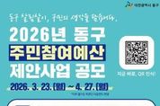 리치데일리 김상현 기자 | 대전 동구는 2026년 주민참여예산 제안사업을 본격 추진하며, 내달 27일까지 공모 접수를 실시한다고 24일 밝혔다. ‘주민참여예산제’는 주민이 사업 발굴부터 심사, 선정까지 예산 편성 전 과정에 직접 참여해 지역에 필요한 사업을 제안하는 제도다. 이번 공모는 총 1억 원 규모로 추진되며, 사업별 2천만 원 한도 내에서 행정동 단위 ‘주민 생활밀착형 소규모 단년도 사업’을 대상으로 한다. 참여 대상은 동구 주민을 비롯해 지역 내 직장인과 학생, 비영리단체 회원 등 누구나 가능하며, 동 행정복지센터 방문 또는 주민참여예산제 전용 온라인 플랫폼(동구 홈페이지 ' 구민참여 ' 주민참여예산제)을 통해 신청할 수 있다. 접수된 제안사업은 사업 추진부서의 적격성 검토와 동 지역회의 심사를 거쳐, 온라인 구민투표 및 동구 주민참여예산위원회 심의를 통해 최종 선정된다. 선정된 사업은 2027년도 본예산에 반영돼 추진될 예정이다. 박희조 동구청장은 “주민의 시선에서 발굴된 사업이 지역에 실질적인 변화를 만들어내는 출발점이 될 것”이라며 “생활 속에서 체감할 수 있