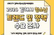 리치데일리 김상현 기자 | 김해시청소년센터가 운영하는 김해시청소년참여위원회는 지역 청소년의 일상을 반영한 정책 발굴을 위해 ‘2026 김해시 청소년 트렌드 및 정책 수요조사’를 실시한다. 김해시청소년참여위원회는 '청소년기본법' 제5조의2에 따라 청소년이 정책 수립과정에 주체적으로 참여할 수 있도록 구성된 공식 참여기구로, 청소년의 의견을 정책에 반영하는 역할을 수행하고 있다. 이번 조사는 기존 통계자료를 기반으로 질문을 구성해 정책 활용도를 높였다. ‘2025년 김해시 청소년종합실태조사’, ‘청소년 통계’, ‘아동·청소년 삶의 질 보고서’를 반영하여 문항을 구성했으며, 2026년 현재 청소년들의 생활 변화와 수요를 구체적으로 파악하는 데 중점을 뒀다. 설문은 ▲일반사항 ▲일상 및 여가 ▲디지털·AI 활용 ▲고민 및 스트레스 ▲청소년 정책 및 인프라 수요 ▲내가 살고 싶은 도시, 김해 등 6개 분야 24개 문항으로 구성되며, 조사 결과는 청소년참여위원회 정책 제안 활동과 연계해 향후 청소년 정책 수립과 사업 기획의 기초자료로 활용될 예정이다. 강미선 김해시청소년센터장(아동청소년과장)은