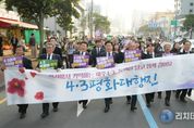 리치데일리 김상현 기자 | 제주특별자치도는 제78주년 4·3희생자 추념식을 하루 앞둔 2일, 제주 도심이 세대와 지역을 아우르는 거대한 평화의 물결로 뒤덮였다. 4·3유족과 도민을 비롯해 전국 대학생, 청소년, 시민단체가 세 갈래 출발 지점에서 발을 떼 하나로 모이는 ‘4·3 평화 대행진’이 펼쳐졌다. 이날 행진은 ‘기억의 계승’과 ‘과거사 연대’라는 4·3의 핵심 가치를 온몸으로 구현한 자리였다. 4·3 평화 대행진은 관덕정, 제주민속자연사박물관, 제주시청 앞 등 세 곳에서 동시에 시작됐다. 관덕정에서는 전국 대학생들이 4·3 평화 선언과 문화공연으로 행진의 서막을 알렸으며, 민속자연사박물관에서는 청소년들이 체험 프로그램과 타악 퍼포먼스를 통해 4·3의 가치를 공유하며 첫걸음을 내딛었다. 제주시청 정문 앞에서는 유족과 시민단체가 참여한 ‘4·3특별법 개정 촉구 결의대회’가 열려 역사 왜곡 처벌 규정 마련의 시급성을 전국에 알렸다. 오후 5시경 세 행진단이 한자리에 합류한 뒤 제주문예회관까지 공동 행진을 이어갔다. 합류 지점에서는 희생자 1만 5,218명을 상징하는 대형 현수막을 행진