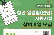 리치데일리 김상현 기자 | 김해시는 미취업 청년에게 기업 직무 경험 기회를 제공하는 청년 일경험(인턴) 지원사업 참여기업을 모집한다고 1일 밝혔다. 청년 일경험 지원사업은 청년에게 실무 중심의 직무 경험과 채용 연계 기회를 제공, 기업에는 맞춤형 인재 발굴·육성을 지원하기 위해 올해로 2년째 시행하고 있다. 지난해는 19개 기업에서 청년 24명이 3개월간 일경험(인턴) 프로그램에 참여했으며, 참여자의 과반이 정직원으로 전환되는 성과를 거두며 실질적인 채용 연계 효과를 입증했다. 올해 모집 대상은 김해시 소재 구인 계획이 있는 상시근로자 3명 이상인 기업 25개사다. 선정된 기업이 청년 채용까지 완료할 경우, 청년 일경험 수당(월 150만원/인)과 기업 멘토 수당(월 5만원/인) 3개월분을 지원한다. 참여기업 모집 기간은 오는 14일까지이며, 신청을 희망하는 기업은 김해시청 인구청년정책관을 방문하거나 이메일 또는 팩스로 접수하면 된다. 자세한 사항은 김해시청 누리집 공고문에서 확인할 수 있다. 우미연 김해시 인구청년정책관은 “기업의 채용 트렌드가 경력 중심으로 변화하면서