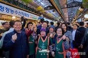 리치데일리 김상현 기자 | 이재명 대통령은 30일 오후 제주 타운홀미팅 '제주의 마음을 듣다' 종료 후, 김혜경 여사와 함께 1박 2일 제주 일정의 마지막 일정으로 동문시장을 방문했다. 동문시장은 제주시 도심에 위치한 대표적인 전통시장으로, 대통령 부부의 방문 소식에 상인들과 방문객들은 놀라움 속에 환호와 박수로 이들을 맞이했다. 입구에 서 있던 한 외국인 관광객은 어디서 왔냐는 이 대통령의 질문에 “오스트레일리아”고 답하기도 했다. 이 대통령 부부는 셀카촬영과 악수를 이어가며 과일모찌 가게에 들러 온누리상품권으로 한라봉모찌와 딸기모찌를 구입해 즉석에서 강유정 대변인, 하정우 수석 등과 함께 시식했다. 이동 내내 이어지는 셀카요청에도 이 대통령 부부는 반갑게 응했다. 그러자 시장을 찾은 많은 도민들은 이동 중인 이 대통령 부부를 향해 "사랑해요", "와 대박", "화이팅"을 외치는 소리로 화답했다. 이 대통령은 특히 어린이들의 사진 요청에 적극적으로 답했다. "애기 있어요"라는 소리가 들리면 발걸음을 멈추고 아이들과 하이파이브를 하거나 반갑게 셀카를 찍었다. 또한 강아지를