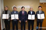 리치데일리 김상현 기자 | 대전시는 1일 시청 중회의실에서 국내 유망기업 5개 사와 총 550억 원 규모의 신규 투자와 대전 이전에 대한 업무협약(MOU)을 체결했다. 이를 통해 250여 개의 일자리가 창출되는 등 지역경제 활성화에 기여할 것으로 전망된다. 이날 협약식에는 이장우 대전시장과 정태희 대전상공회의소 회장을 비롯해 정태영 ㈜동명씨앤에스 최고기술책임자(CTO), 황보제민 ㈜라이온로보틱스 대표, 이강헌 알엑스㈜ 대표, 선강훈 에이치앤파워㈜ 경영관리본부장, 류석진 유저스㈜ 대표가 참석했다. 협약에는 기업의 대전 이전 및 신설 투자와 함께 원활한 투자 진행을 위한 대전시의 행정적ㆍ재정적 지원과 신규고용 창출 및 지역경제 발전을 위한 공동 협력 방안이 담겼다. 서구 평촌 산업단지에는 첨단 기술과 나노코팅 기술을 결합한 경기장 관람석 의자 제조 기업 ㈜동명씨앤에스가 투자해 제품의 양산 능력을 확대할 예정이다. 유성구 탑립ㆍ전민지구에는 국방ㆍ재난ㆍ산업안전 분야 사족보행 로봇 제조 기업 ㈜라이온로보틱스와 인공지능(AI) 기반 소형모듈원자로(SMR) 디지털화 기술을 개발하는 알엑스㈜(대표 이