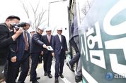 리치데일리 김상현 기자 | 조원휘 대전시의회 의장과 송인석 산업건설위원장이 1일 대전 유성구 도안동 호수공원 일원에서 국내 최초로 실시된 3칸 굴절차량 도로 시험 운행 현장을 점검했다. 한편, 대전시가 전국 최초 도입하는 3칸 굴절차량은 향후 6월까지 도안동로 중앙버스전용차로 일부 구간(갑천4블럭~용반네거리)에서 시험 운행 후 전용차로 및 차고지 등 기반 시설 구축 일정에 맞춰 올해 10월까지 단계적으로 개통할 계획이다.