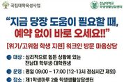 리치데일리 김상현 기자 | 전남대학교가 심리적 위기 상황에 놓인 학생을 ‘그 순간’ 바로 지원하는 즉시 개입형 상담체계를 구축했다. 예약과 대기를 없애고 방문 즉시 전문가와 연결하는 ‘워크인(Walk-in) 심리상담’을 도입해, 위기 대응의 골든타임을 확보하고 고위기·고위험군 학생 보호를 한층 강화한다. 1일 전남대에 따르면, 학생생활상담센터는 심리적 위기를 경험하는 학생들을 신속하게 지원하기 위해 ‘워크인(Walk-in) 심리상담’ 제도를 도입하고 본격 운영에 들어갔다. ‘워크인 심리상담’은 별도의 사전 예약 없이 센터를 방문하면 즉시 상담 전문가와 연결되는 밀착형 지원 시스템이다. 특히 심리적 긴급 상황이나 고위험군에 속한 학생들이 초기 개입 시점을 놓치지 않고 전문적인 상담을 받을 수 있도록 설계됐다. 이번 제도는 학생들이 도움을 요청하는 ‘바로 그 순간’에 개입하는 것을 핵심으로, 기존 예약 중심 상담 체계의 한계를 보완하고 보다 신속하고 실효성 있는 위기 대응을 가능하게 할 것으로 기대된다. 정주리 학생생활상담센터장은 “학생들이 마음의 문을 열고 도움을 요청하는