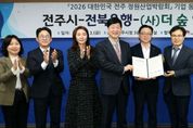 리치데일리 김상현 기자 | 전주덕진공원에 ㈜전북은행과 함께 만들고, 모든 시민이 함께 누리는 정원이 조성된다. 전주시와 ㈜전북은행, (사)더숲(대표 정명운)은 3일 시청 3층 소회의실에서 윤동욱 전주시장 권한대행 부시장과 김은호 전북은행 부행장, 정명운 (사)더숲 대표 등이 참석한 가운데 ‘2026 대한민국 전주정원산업박람회’ 기업동행정원 조성을 위한 업무협약을 체결했다. 이날 협약에 따라 세 기관은 올해 전주에서 열리는 ‘2026년 대한민국 전주정원산업박람회’와 연계해 덕진공원에 기업동행정원을 조성, 정원도시 전주의 위상을 높이고 지역 정원문화 확산에 힘을 모으기로 했다. 덕진공원에 대한민국 전주정원산업박람회와 연계해 기업동행정원을 조성키로 한 것은 전북현대모터스FC와 ㈜포스코이앤씨, 대자인병원에 이어 전북은행이 네 번째이다. 전북을 대표하는 금융기관으로써 그동안 소상공인·중소기업 지원과 사회공헌 활동을 통해 지역경제 버팀목 역할을 해온 전북은행은 이번 기업동행정원 조성을 통해 지역상생철학을 시민 체감형 공공공간으로 구현한다는 구상이다. 시는 이번 협약에 따라 덕진공원 내 기업동행정