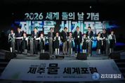리치데일리 김상현 기자 | 제주특별자치도와 제주개발공사는 18일 제주국제컨벤션센터(ICC)에서 ‘2026 세계 물의 날 기념식 및 제주물 세계포럼’을 열고, 기후위기 시대 제주가 나아갈 지속가능한 물 관리 모델의 청사진을 제시했다. 유엔(UN)이 정한 세계 물의 날(3월 22일)을 기념해 마련된 이번 행사에는 오영훈 지사, 김좌관 국가물관리위원장, 양병우 제주도의회 부의장, 김광수 제주도교육감, 백경훈 제주개발공사 사장, 위성곤 국회 기후위기특별위원장을 비롯해 물 분야 전문가와 환경단체 등 300여 명이 참석했다. 기념식에서는 물 보전‧관리에 기여한 유공자에 대한 도지사 표창과 청소년 대상 물사랑 공모전 수상자 시상식이 진행됐으며, 제주극단 마로와 제주울림어린이합창단이 ‘지속가능한 물’을 주제로 기념공연을 선보였다. 오영훈 지사는 인공지능(AI) 등 첨단 기술을 물 관리에 접목하고, 제주 특유의 공동체 문화를 통해 수자원을 함께 지키겠다는 의지를 밝혔다. 오 지사는 “지하수는 제주의 삶과 지속 가능성을 지탱하는 대체 불가능한 핵심 자원”이라며 “디지털 기술과 지역사회 참여를 결합한 제주형 물 관리