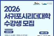 리치데일리 김상현 기자 | 서귀포시에서는 시민 자치의식과 리더십 강화를 위한 ‘제4기 서귀포시 리더대학’의 수강생을 3월 16일부터 3월 27일까지 모집한다. 모집대상은 서귀포시민 및 지역생활권자 100명으로, 전공별 (주민자치학과, 양성평등학과)로 각 50명씩 모집한다. 이번 제4기 리더대학 교육과정은 4월 6일 입학식을 시작으로 8월까지 매주 월요일 오후 18시 30분부터 20시 30분까지 총 20개 강의로 운영되며, 전년도 운영 결과를 바탕으로 학사과정의 효율적인 운영을 통해 수강생의 만족도를 높여나갈 계획이다. ‘주민자치학과’는 수강생들의 자치역량을 실질적으로 강화하기 위해 참여·현장형 수업 비중을 대폭 확대하고, 이를 통해 지역사회 내의 자발적·능동적 리더를 양성하는 데 집중한다. 한편,‘양성평등학과’는 양성평등 가치 확산은 물론 지역 리더십·건강관리·인문교양 등 교육과정을 다채롭게 편성하여 시민들이 폭넓은 분야의 강좌를 접할 수 있도록 운영할 예정이다. 수료기준은 전공 및 공통과목 출석률 60% 이상이며, 이를 충족한 수료생에게는 제주도민대학과 연계한 명예학사 학점 40점이