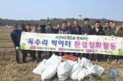 리치데일리 김상현 기자 | 서산시 부석면 창리, 마룡리, 간월도리 등 3개 마을 주민들로 구성된 천수만 생태관광협의회(회장 : 김만석)에서 매년 천수만 독수리 도래지에 대한 정화활동을 실시하고 있다. 서산시에 따르면, 27일 천수만 생태관광협의회 위원과 서산버드랜드 직원 등 20여명은 부석면 창리 독수리 도래지역 정화활동을 통해 고라니 뼈와 쓰레기 등 250kg이 넘는 폐기물을 처리했다고 밝혔다. 독수리 서식지에는 겨우내 서산버드랜드와 생태관광협의회에서 200여 마리의 고라니 폐사체 등을 먹이로 제공하여 뼈와 껍질이 산재해 있었고, 그동안의 강풍으로 인하여 많은 쓰레기가 농경지에 날아든 상황이었다. 천수만 생태관광협의회에서는 지난해부터 지역 주민들이 자체적으로 독수리 먹이터의 청소활동을 시작했으며, 서산버드랜드에서도 적극적으로 동참하면서 연례행사로 이어지고 있다. 김만석 천수만생태관광협의회장은 “지난 겨울 독수리는 우리 지역의 자랑이었다”며, “더 많은 철새들이 우리 지역을 찾아올 수 있도록 주민들의 힘을 모으겠다.”라고 밝혔다. 심영복 서산버드랜드사업소장은 “앞으로도 지역 주민과 함