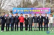 리치데일리 김상현 기자 | 지난 29일 진주 모덕체육공원 족구장에서 선수와 관계자 330여 명이 참가한 가운데 ‘제11회 진주시족구협회장배 족구대회’가 열렸다. 진주시족구협회가 주최·주관하고 진주시와 진주시체육회가 후원한 이번 대회는 족구 동호인 간 화합과 교류를 도모하기 위해 마련됐다. 이날 대회는 진주시족구협회에 소속된 50개 팀이 참가했으며, 조별 예선리그 후 본선 토너먼트로 진행됐다. 개회식에서는 족구 종목 발전과 생활체육 활성화에 기여한 공로를 인정받아 ‘진주시족구협회 남강클럽’에 진주시장 감사패가 수여됐다. 문태식 진주시족구협회장은 “대회에 참가한 모든 분들이 안전하게 경기를 즐기고 좋은 추억을 만들어 가시길 바란다”고 말했다. 진주시 관계자는 “이번 대회를 통해 참가자들이 평소 쌓인 스트레스를 해소하고 활력을 되찾는 뜻깊은 시간이 되길 바란다”고 말했다.