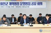 리치데일리 김상현 기자 | 화천군이 역내 건설경기 부양을 통해 지역자본의 유출을 막고, 지역 내 순환을 유도하기 위한 계약행정 운영 방침을 정했다. 군은 지난 23일 오후 군청에서 각 실과소장 및 사업부서 주무담당, 지역 건설 관련 단체장들이 참석한 가운데‘2026 화천군 계약행정 운영 방침 공유 회의’를 개최했다. 이례적으로 열린 이번 회의는 날로 심각해지고 있는 중동의 긴장과 그에 따른 유가 급등 등 최악의 대내외 경제상황 속에서 지역 건설업체 보호와 건설경기 부양을 위해 마련됐다. 올해 화천군 계약행정의 지향점은 ‘지역에서 발주한 사업의 예산이 얼마나 화천에 남아 있는가?’라는 질문에서 시작된다. 화천군은 이날 군의 발주 사업예산이 지역 건설경기를 부양하고, 소상공인에게 환원되는 지역경제 선순환 체계를 구축하겠다는 강력한 의지를 밝혔다. 이를 위해 첫째, 지역 건설업체 보호 및 계약 운영 방침을 분명히 했다. 무엇보다 수의계약 시, 화천에서 실질 거주하는 업체부터 우대하고, 특정업체 편중을 막겠다고 강조했다. 둘째, 불법 하도급을 근절하고, 각 업체들이 하
