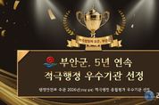 리치데일리 김상현 기자 | 부안군은 행정안전부에서 주관한 2026년(2025년 실적) 지방정부 적극행정 종합평가에서 우수기관으로 선정돼 지난 2021년 하반기 성과 점검부터 5년 연속 우수기관 선정이라는 금자탑을 쌓았다고 밝혔다. 행정안전부 발표에 따르면 군은 전국 243개 지방정부(광역 17개, 기초 226개)를 대상으로 한 이번 평가에서 우수한 성적을 거둬 전북특별자치도 시‧군 중 유일하게 5년 연속 적극행정 우수기관으로 선정되는 영예를 안았다. 이번 성과는 일시적인 결과가 아니라 지난 5년간 꾸준히 이어온 행정 혁신의 결실이라는 점에서 의미가 깊다. 군은 2022년(21년 하반기 성과 점검) 선정을 시작으로 2023년(2022년 실적), 2024년(2023년 실적), 2025년(2024년 실적)에 이어 올해 2026년(2025년 실적) 평가까지 단 한 차례도 거르지 않고 우수기관 타이틀을 지켜냈다. 특히 2024년과 2025년에는 상반기 적극행정 성과 점검에서도 잇따라 우수기관으로 선정돼 행정안전부 장관상을 수상하는 등 전국 최고 수준의 업무 역량을 증명해 왔다. 이번 평가는 적극