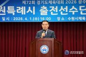 리치데일리 김상현 기자 | 수원특례시의회는 1일 수원시체육회관 2층 대회의실에서 열린 '제72회 경기도체육대회 수원시 선수단 결단식'에 참석해 선수단을 격려하고 선전을 기원했다. 이번 결단식은 오는 4월 16일부터 18일까지 광주시에서 열리는 제72회 경기도체육대회를 앞두고 수원시 선수단의 각오를 다지고 사기를 높이기 위해 마련됐다. 이날 행사에는 수원특례시의회 의장을 비롯해 수원시장, 수원시체육회장, 체육회 임원, 선수단 등 약 180여 명이 참석했으며, 출전보고와 단기 수여, 선수대표 선서 등이 진행됐다. 특히 수원시는 총 473명의 선수단이 출전해 27개 종목에서 기량을 겨룰 예정이다. 수원특례시의회는 결단식에 참석해 선수단의 사기를 북돋고, 시민과 함께하는 체육도시 수원의 위상을 높이기 위한 응원의 뜻을 함께했다. 이재식 의장은 축사를 통해 “그동안 흘린 땀과 노력이 결실을 맺을 시간이 다가왔다”며 “수원 선수단이 최고의 기량과 스포츠 정신으로 대회에 임해 시민들에게 큰 감동을 전해주길 바란다”고 말했다. 이어 “결과도 중요하지만 정정당당한 경기와 서로를 믿는 팀워크가 더욱 빛날 것”이라며
