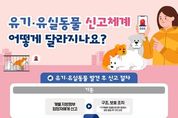 리치데일리 김상현 기자 | 유기·유실동물 신고체계 어떻게 달라지나요? ■ 유기·유실동물 발견 후 신고 절차 (기존) 개별 지방정부 담당자에게 신고 → 구조, 보호 조치 *지역별로 동물보호센터 등에서 현장 출동 후 구조·보호 (개선) 방법 ① 개별 지방정부 담당자에게 신고 → 구조, 보호 조치 *지역별로 동물보호센터 등에서 현장 출동 후 구조·보호 방법 ② 동물보호상담센터 ☎1577-0954(1) → 관할 지방정부 전화 자동 연결 → 구조, 보호 조치 *지역별로 동물보호센터 등에서 현장 출동 후 구조·보호 방법 ③ 국가동물보호정보시스템 접수 → 접수 내용 관할 지방정부 전달 → 구조, 보호 조치 *지역별로 동물보호센터 등에서 현장 출동 후 구조·보호